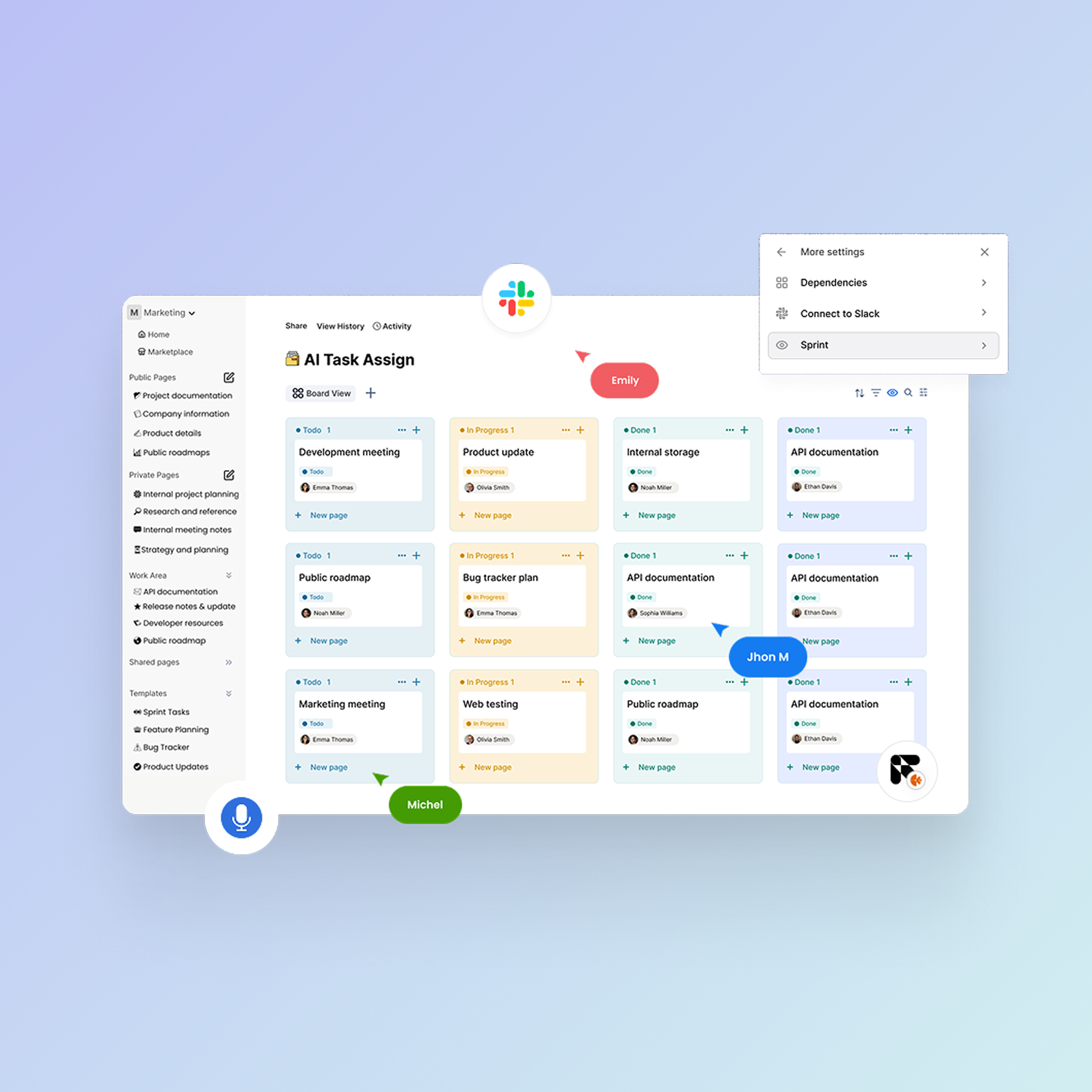 Get started in seconds with ready‑made setups for engineering, product, design, marketing, and more.